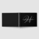 Elegantes personalisiertes Schwarz-Weiß-Monogramm Hochzeitsgast-Buch mit einem modernen Script-Schriftart. Einfach online personalisieren. Matching Artikel zur Ergänzung dieses minimalistischen Gästebuches.
