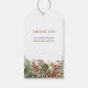 Fügen Sie Ihren Favoriten eine wohlüberlegte Touch mit unseren Gunst-Tags hinzu, mit einer Danksagung auf der Rückseite. Diese Tags sind Teil der "eleganten Winter Pinecone Greenery Wedding Suite" und verleihen Ihren Lieblingen einen gepflegten und eleganten Look.