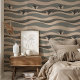 Elegante Pinguine in Monochromen Waves Grau & Beig Tapete