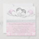Adorable graue und rosa Twin Girl Dusche Einladungen. Sweet pink Mädchen Zwillinge mit weißem Spitzen Overlay.