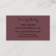 Mit dieser Pflaumenkarte und der silbernen Visitenkarte starten Sie Ihre beruflichen Dienstleistungen. Sie können alle Informationen ganz einfach auf Ihre Informationen ändern, indem Sie auf der rechten Seite die Option "Personalisieren Sie diese Vorlage" auswählen und sie in die Vorlagenfelder eingeben. Wenn Sie dabei helfen möchten oder noch weitere Fragen haben, zögern Sie bitte nicht, mich unter julieartwork4@gmail.com oder per Zazzle-E-Mail zu kontaktieren, und ich würde mich freuen, dies zu tun! Wenn Ihnen dieses Design gefällt und ich gerne eine Visitenkarte oder andere Zazzle-Produkte entwerfen möchte, speziell um Ihre Bedürfnisse zu Anzug, kontaktieren Sie mich bitte auch. Danke, dass du JulieArtwork Store ausprobiert hast und heute einen schönen Tag genossen hast!