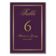 Diese eleganten, individuellen Hochzeitstischkarten fügen Ihrem Hochzeitsort eine Touch Klasse hinzu. Dieses moderne Design-Template zeigt Imitate Goldtypografie gerahmt in einem glänzenden Imitat Goldrand auf einem plum lila Hintergrund. Unterhalb der Tischnummer sind Ihre Vornamen in Imitaten Goldkalligraphie und Hochzeitstag, um die besten Wünsche für Ihre Hochzeit und Hochzeit zu personalisieren! Entworfen von ©Susan Coffey.
