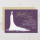 Die elegante Brauttee-Dusche lädt zu einer stilvollen Herbstbräune ein und bietet einen verzierten Kalligraphie-Script-Schriftart und fließendes Hochzeitskleid. Scroll blüht, Blume und Schmetterlingdetails beleuchten das ätherische Kleid. Weiß, Pflaume / Auberginen lila, Champagner Gold / Bräune Herbstfarben.
