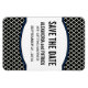 Schlichte und raffinierte Elegant Quatrefoil Save the Date Premium Flexi Magnet mit einem trendigen marokkanischen Kacheln gemusterten Hintergrund und skallopummierten Rahmen in dunkelblau. Der Datums Magnet ist eine moderne und schicke Wahl für die Ankündigung Ihrer Hochzeit. Einfach zu anpassen, fügen Sie einfach Ihre Hochzeitsdetails in den Textfeldern zur Verfügung gestellt. Klicken Sie auf "Anpassen", um weitere Personalisierungsoptionen zu erhalten.