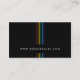 Dieses schlichte, elegante Visitenkartendesign besticht durch ein Set von fünf Lichtstrahlen in Regenbogenfarben, die von oben und unten strömen. Ihre geschäftliche URL erscheint am Treffpunkt dieser Lichtstrahlen. Oben auf der Rückseite der Karte erscheinen die Lichtstrahlen von oben rechts in Richtung Mitte. Unter diesen Lichtstrahlen erscheinen Name, Titel und Kontaktdaten in leicht lesbaren Buchstaben. Ideal für berufliche, elegante, einfache, minimale, schwarze, ernste, auffallende Themen.