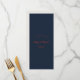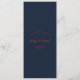Erleben Sie Ihren Empfang mit diesem eleganten, rot-schwarz-blauen Hochzeitsmenü. Das klassische Design präsentiert Ihre kulinarischen Köstlichkeiten und verleiht Ihrem Hochzeitsdekor einen raffinierten Akzent. Dieses Menü ist leicht auf Ihr individuelles Thema zugeschnitten und sorgt für ein nahtloses kulinarisches Erlebnis. Klicken Sie auf "Details", um dieses elegante Menü zu personalisieren. Um den Text zu verschieben oder die Größe, den Schriftart oder die Farbe zu ändern, klicken Sie auf "Bearbeiten mit dem Entwurfstool". Als Teil der Hochzeitskollektion von AVERY verbindet es sich mühelos mit anderen passenden Gegenständen, um ein zusammenhängendes, anspruchsvolles Thema zu schaffen. Sehen Sie sich den Sammellink auf dieser Seite an, um alle passenden Elemente in diesem schönen Design zu sehen.