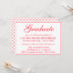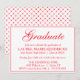 Diese einfache, aber elegante Graduiertenparty-Einladung enthält das Wort "Graduate" in einem modernen roten Kalligraphieskript. Personalisieren Sie die Einladung, indem Sie den Namen der Absolventen, den Namen der Schule oder Uni, die Klasse der Absolventen und die Details der Absolventen mit der leicht zu verwendenden Vorlage hinzufügen. Alle Buchstaben sind rot. Die Rückseite der Einladung hat ein rotes Gitterherz-Muster vor einem weißen Hintergrund.