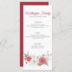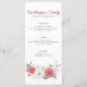 Ein elegantes Menü für das Weihnachtsessen Ihrer Familie. Das einfache Design verfügt über eine Aquarellgarage aus rosa und weißen Poinsettias Die Vorlage ist für eine Vorspeise, Hauptspeise und Dessert eingerichtet. Auch personalisieren Sie mit Ihrem Familiennamen. Die Rückseite ist ein koordinierendes Rot.