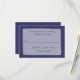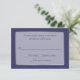 Alle zweckmäßige RSVP-Karte in einer Notfall-Mitternachtsblau lila Farbe, mit Grafiken in einem silberfarbenen, halbtransparenten, weißen Textbereich mit schwarzem Text. Die Größe ist so klein, dass sie mit allen gängigen Einladungsgrößen übereinstimmt. Passen Sie den Text an Ihre Bedürfnisse an.