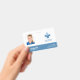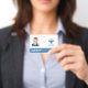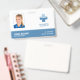 Ein elegantes Abzeichen für medizinisches Personal und Krankenhausmitarbeiter. Ideal für Krankenschwestern und Ärzte von Kliniken und pflegenden Zuhause. Das Design zeigt ein Mitarbeiter-Foto, den Namen der Mitarbeiter und den Titel des Jobs. Darüber hinaus ist Platz für eine ID-Nummer und das Ablaufdatum enthalten. Der Name des Krankenhauses ist oben rechts abgebildet und weist ein Logo, einen Namen des Krankenhauses und einen Slogan auf.