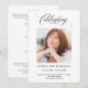 Ein elegantes, personalisiertes Foto-Orden für Beerdigung-Gedenkprogramm. Das Design verfügt über eine einfache Fotovorlage mit klassischer, moderner schwarzer Typografie auf einem sauberen, weißen Hintergrund. Leicht zu anpassendes Text und Foto. Unser herzliches Beileid an Sie und die Familie für Ihren Verlust.