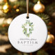 Religiöse Cross Green Botanical Baptism Keramik Ornament