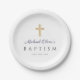 Personalisierte Elegant Religious Cross Navy Blue Boy Taufe Papier Teller