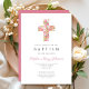 Elegante religiöse rosa, florale Kreuztaufe Einladung