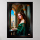 Elegante Renaissance-Frau in grünem Kleid Poster