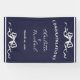 Dieses elegante romantische Hochzeitsbanner mit Navy-Blauem Band und Bogen ist gestaltet mit weißem Text auf navy-blauem Hintergrund mit weißen Bogen-Akzente. Der Vordertext enthält: GRATULATION, die Vornamen der Braut und des Bräutigams und das Hochzeitsdatum. Zur Personalisierung fügen Sie einfach Ihren Text in unsere einfache Vorlage ein und ersetzen den Beispieltext. Sehen Sie sich sicher auch das passende "Willkommen zu unserer Hochzeitsfeier"-Banner und die Hochzeitspapiere, einschließlich der Hochzeitseinladung und der Save-The-Date-Karte, an.