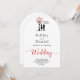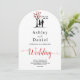 Diese elegante Schwarzweiß-Bogenhochzeit lädt zu einer modernen Hochzeit ein. Das einfache Design zeichnet sich durch eine elegante schwarze Kalligraphie und eine Braut- und Bräutigam-Illustration auf einem sauberen, weißen Hintergrund aus. Die Einladungskarte enthält die Hochzeitsdetails auf der Rückseite, anstatt für eine separate Kapselkarte zu bezahlen.