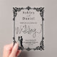Diese elegante Schwarzweiß-Acrylhochzeit lädt zu einer modernen Hochzeit ein. Das schlichte Design zeichnet sich durch elegante schwarze Kalligraphie, einen schicken schwarzen Rahmen und eine Bräunungs- und Bräutigam-Abbildung auf einem klaren, transparenten Hintergrund aus. Die Einladungskarte enthält die Hochzeitsdetails auf der Rückseite, anstatt für eine separate Kapselkarte zu bezahlen.
