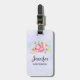 Ein Gepäckanhänger mit einer schönen und eleganten Aquarell schuf Blumenstrauß. Rosa Blume, umgeben von hellgrünem Grün. Lila Aquarell