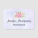 Namensschild mit einer schönen und eleganten Aquarell erstellt Blumenstrauß. Rosa Blume, umgeben von hellgrünem Grün. Lila Aquarell