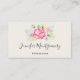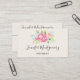 Eine Visitenkarte mit einer schönen und eleganten Aquarell kreierte Blumenstrauß. Rosa Blume, umgeben von hellgrünem Grün. Cremefarbener Hintergrund.