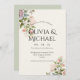 Elegante rosa Rose, Knospen und Grünpflanzen handgezeichnet und in Aquarellfarben bemalt Hochzeitseinladung. Die Farbe Grün auf der Rückseite ergänzt die Blumensträuße auf der Vorderseite. Einfach schön.