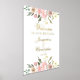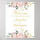 Beginnen Sie Ihre Hochzeitsgäste mit diesem eleganten Blumenprint, der mit schönen Rosen und Pfannkuchen in Rosa und Rosa dekoriert ist. Ein schönes Schild für eine Hochzeitsfeier im Frühjahr oder Sommer, die in einem schicken Goldfolienskript geschrieben ist.