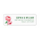 Dieses Rücksendeetikett verfügt über ein sauberes, minimalistisches Design mit zwei großen rosa Pfingstrosen links und eleganter Serif-Typografie rechts. Die weichen rosa Blütenblätter kontrastieren schön mit tiefgrünen Blättern und erzeugen einen klassischen und raffinierten Look. Das Layout ist geräumig und ermöglicht es jedem Element, deutlich hervorzustechen, perfekt für formelle Anlässe. Die Gesamtwirkung vermittelt Grazie und unterschwellige Schönheit und ist daher ideal für Hochzeiten oder anspruchsvolle Veranstaltungen.