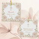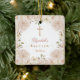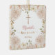 Eleganter rosa boho blumengeschmückter Taufstein. Ein modernes Aquarellbild mit rosa bohfarbenem Blumenrahmen mit einem Kreuz. Feiern Sie diesen fröhlichen Anlass mit unserem personalisierten Ornament, das eine wunderbare Geschenkidee machen wird.