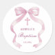 Elegante rosa Bow-Taufe Runder Aufkleber