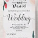 Diese elegante Wasserfarbenhochzeit lädt zu einer modernen Hochzeit ein. Das romantische Design zeichnet sich durch ein elegantes Aquarellbild aus, das mit einer Braut- und Bräutigrade sowie einer schwarzen Kalligraphie auf weißem Hintergrund besticht.