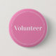 Elegante, hellrosa "Volunteer"-Buttons für Freiwillige, Lehrer, Führer, Veranstaltungsorganisatoren für besondere Veranstaltungen wie Hochzeiten, Kunsthandwerksmessen, Zuhause & Garden-Shows, karitative Veranstaltungen, Business- und Firmenveranstaltungen. Retro-Stil, weiße Typografie und dünne doppelte Grenze verleiht diesem Knopf ein elegantes Aussehen.