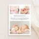 Elegante Geburtsankündigung, um das kleine Mädchen Familie und Freunden vorzustellen, mit ihrem Foto in einem rosa Aquarellrahmen, bestehend aus zarten Bändern und einem Coquette-Bogen, und ihren Namen und Geburtsstatistiken in klassischer Serifentypografie. Fügen Sie auf der Rückseite 3 zusätzliche Fotos und Ihre personalisierte Nachricht hinzu.