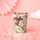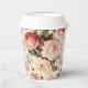 Elegante und künstlerische Gestaltung von rosa Rosen und Blattwerk auf beigem Hintergrund.