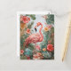 Elegante rosa Flamingo Bird und tropische Blume Postkarte