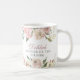 Elegantes Rosa und elfenbeinfarbene Blume aus Wasserfarben umrahmen die Ober- und Unterkante dieser herrlichen Frühjahrsheirat-Tasse für die Mutter des Bräutigams. Inmitten der pfirsichblütenblühenden Blätter, die den personalisierten Namen Ihrer Schwiegermutter in der Kalligraphie umgeben, schmücken die Spuren von Salbei-Grün.