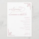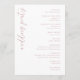 Dieses Hochzeitsprogramm verfügt über ein minimalistisches und elegantes Design mit einer weichen rosa Farbpalette, die eine warme und einladende Atmosphäre schafft. Das Layout ist sauber und gut strukturiert und zeigt eine Mischung aus Kursiv- und Serifenschriften, die dem Gesamterscheinungsbild eine gewisse Raffinesse verleihen. Geometrische Linienakzente umrahmen den Text asymmetrisch und unterstreichen die moderne Ästhetik, ohne den zentralen Inhalt zu überlagern. Perfekt für Paare, die einen zeitgenössischen und dennoch zeitlosen Stil suchen, erfasst dieses Programm die Essenz ihres besonderen Tages in Franklin, TN, am 29. August 2026.