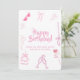 Elegante rosa Happy Birthday Grußkarte mit Zeichnu Einladung