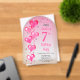 Eleganter Imitat Glitzer und gemusterte rosa Ballons mit rosa Band und rosa Akzent Stars "7" 7. Geburtstagsfeier Einladung.