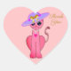 Elegante rosa Kätzchenkatze auf Korallenrosa Danke Herz-Aufkleber