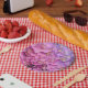 Elegante, rosa, lila Blumendörfchen Hydrangeas Pappteller