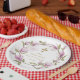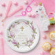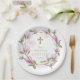 Elegante rosa Magnolia Blume Wreath Gold Taufe Pappteller
