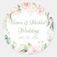 Elegante Rosa & Pastel Grüne Blumenhochzeit Runder Aufkleber