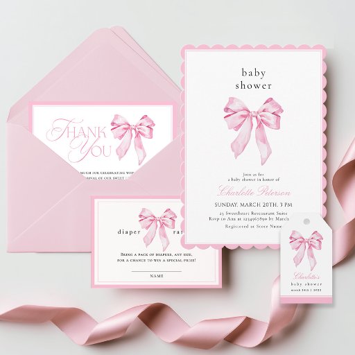 Minimalist Pink Bow Baby ShowerDesignt von Krisztina-Klara Maier
