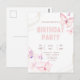 Elegante rosa Schmetterling Geburtstagseinladung Postkarte