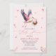 Feiern Sie die Ankunft eines kleinen Freudenbündels mit dieser atemberaubenden rosa Babydusche-Einladung! Dieses Design mit einem anmutigen Storch, der ein zartes Nest trägt und von flatternden Schmetterlingen umgeben ist, strahlt Charme und Eleganz aus. Ideal für eine traumhafte und unvergessliche Ansammlung!