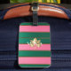 Elegante rosa und grüne Streifen Mit Monogramm Gepäckanhänger