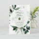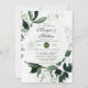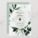 Das Design zeichnet sich durch ein bedrucktes, farbiges Blattelement in den Farbtönen von Salbei grün und Smaragdgrün, Eukalyptus-Blattwerk aus, das auf einem hellgrünen Aquarellhintergrund Blätter trägt. Kalligrafie oder Schrift mit dem Design-Kunstwerk. Sammelstück mischen und abgleichen. Ideal für Ihre Hochzeitsfeiern!