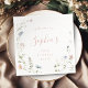 Elegante, zarte Aquarell-Wildblume mit modernem Schrift. Pastellfarben in sanftem Rosatinrot, weiß, beige, staubblau und botanisches Grün, einfach und romantisch. Ideal für die moderne rustikale Geburtstagsparty, das boho Country Garden Party im Frühling und Sommer. Sehen Sie sich alle passenden Stücke in der Sammlung an.