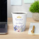 Diese eleganten Aquarelltassen mit Blumenbechern aus der Quinceñera-Zeit bieten hübsche sommerliche Blume in rosa und lila Gängen und Rose, eine Goldprinzenkrone und einen Namen, der in der modernen Schrift personalisiert werden soll. Entworfen von Susan Coffey.